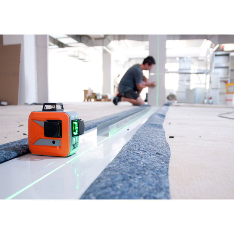 Les lignes laser vertes bien visible et le calage automatique robust permettent un nivellement et alignement rapides et précis ainsi que la prise d'aplomb et le report d'angles droits dans l'aménagement intérieur.